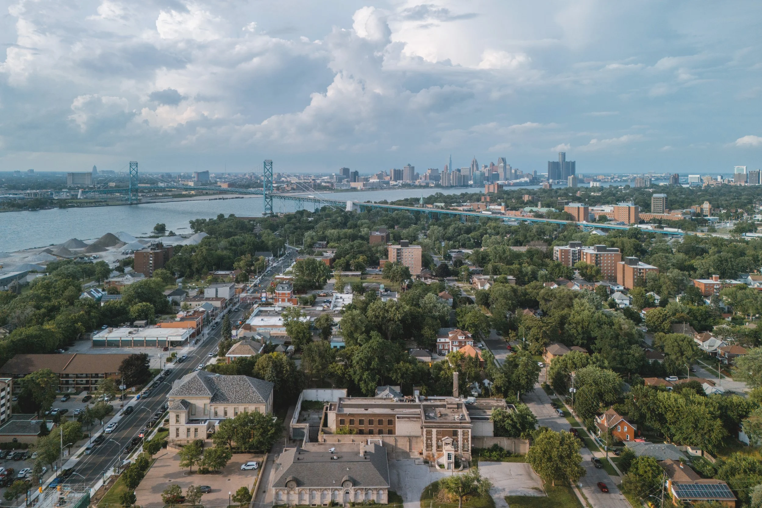 Windsor/Detroit from the vantage point of Olde Sandwich Town (2024).