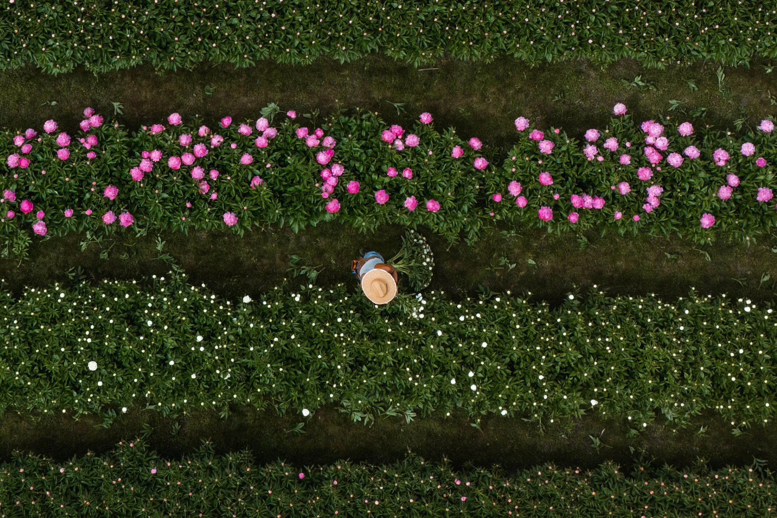 Peonies are harvested at the Fleur de Roy peony farm in Mitchell’s Bay, Ontario (2025).