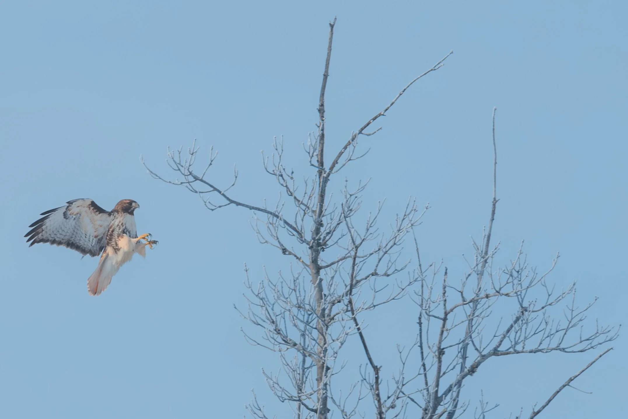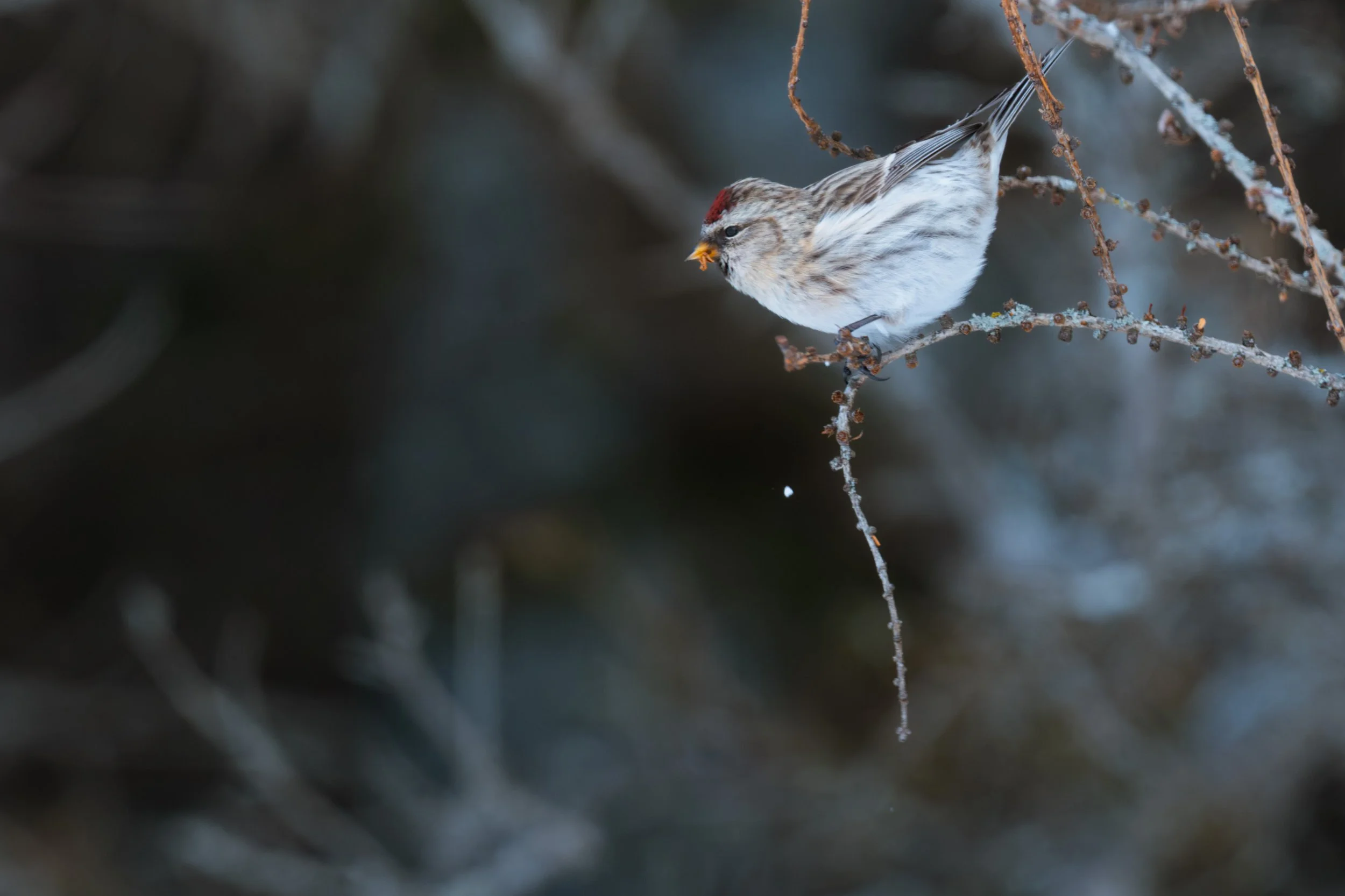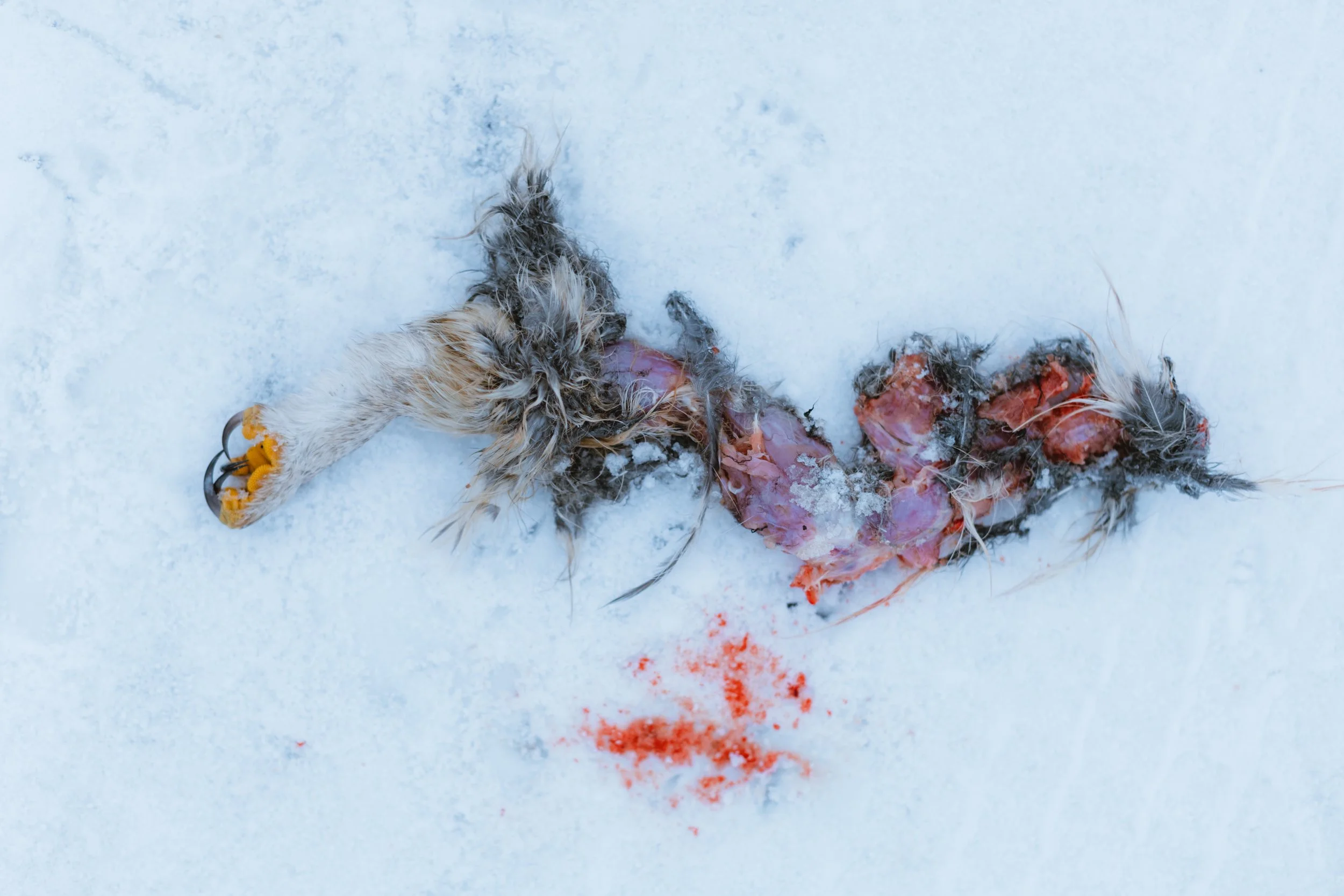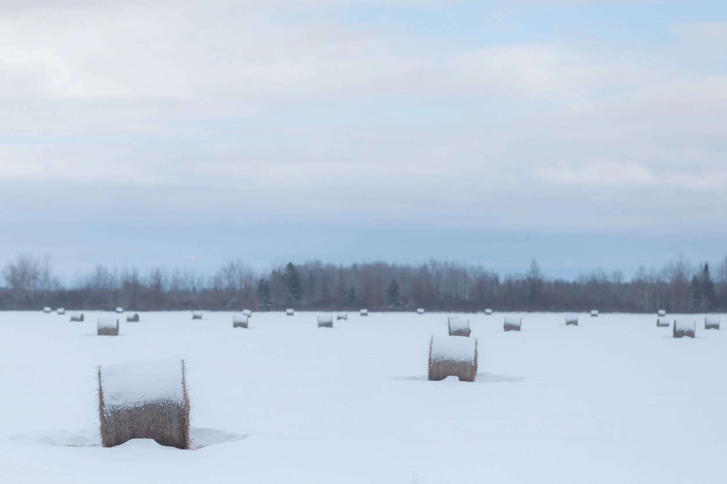 And it’s not only owls that show up here, as I quickly discovered roaming the snowy county roads. Bald eagles, red tailed and rough-legged hawks where all seen within the first hour. Northern finches too. The landscape had an icy aesthetic and the sun was faint, hiding behind a thin layer of upper-level clouds. The area had a weathered, pastoral charm. Crystallized snow clung to the trees while chimney smoke lingered in the cold northern air. I had discovered an image-maker’s paradise. But no owls.