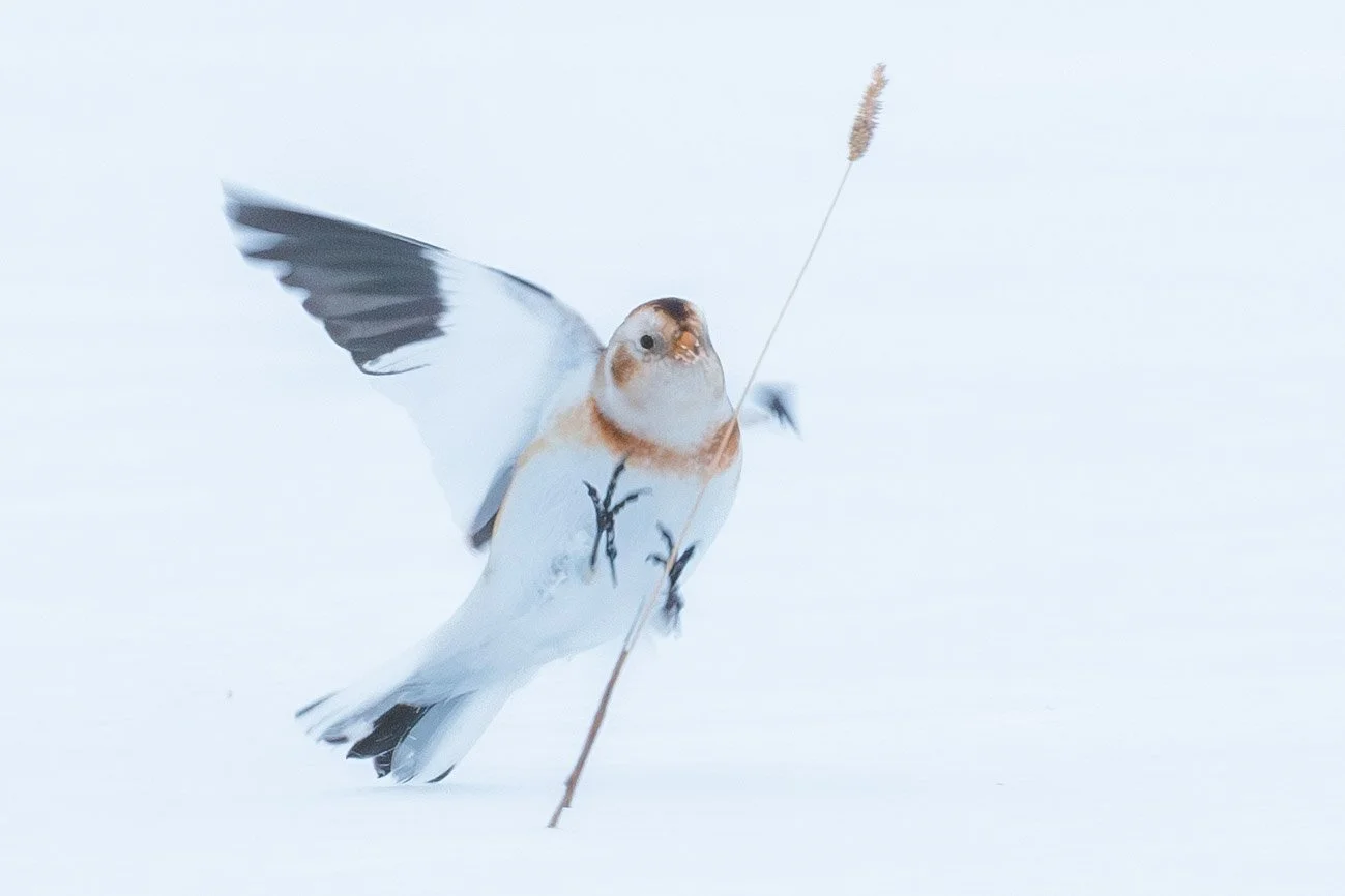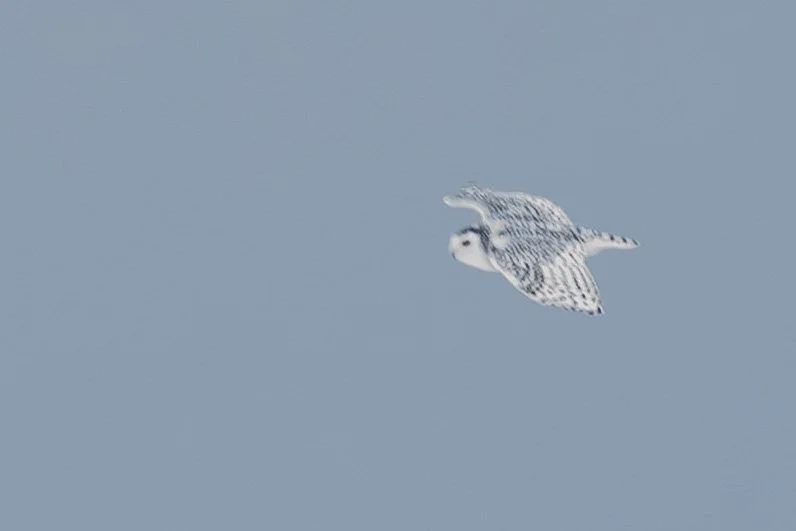 The arctic owl spends most of their time in the arctic tundra where they breed and hunt lemmings. In the winter, some migrate south, ending up in prairies and grasslands, airports, and farmer’s fields - all areas that resemble the treeless expanse of the tundra. But the hay fields surrounding Rudyard offer the migrating owl an abundance of prey in voles, mice, and shrews, with clear sight lines and endless perching structures.